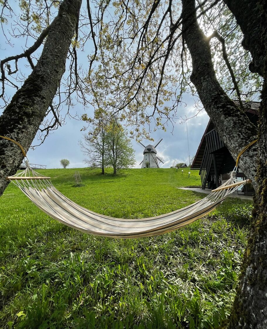 Atveldzēties aicinām piemājas dīķī, kur mājo arī oranžās korhas. Lēnā vakara baudītājiem ir iespēja vērot izgaismotās Āraišu vējdzirnavas un zvaigžņotās debesis, sēžot siltajā kublā. Pirts namiņā mājo pirts gariņš, kurš parūpēsies par mājīgumu, siltumu un naktsmiegu.
