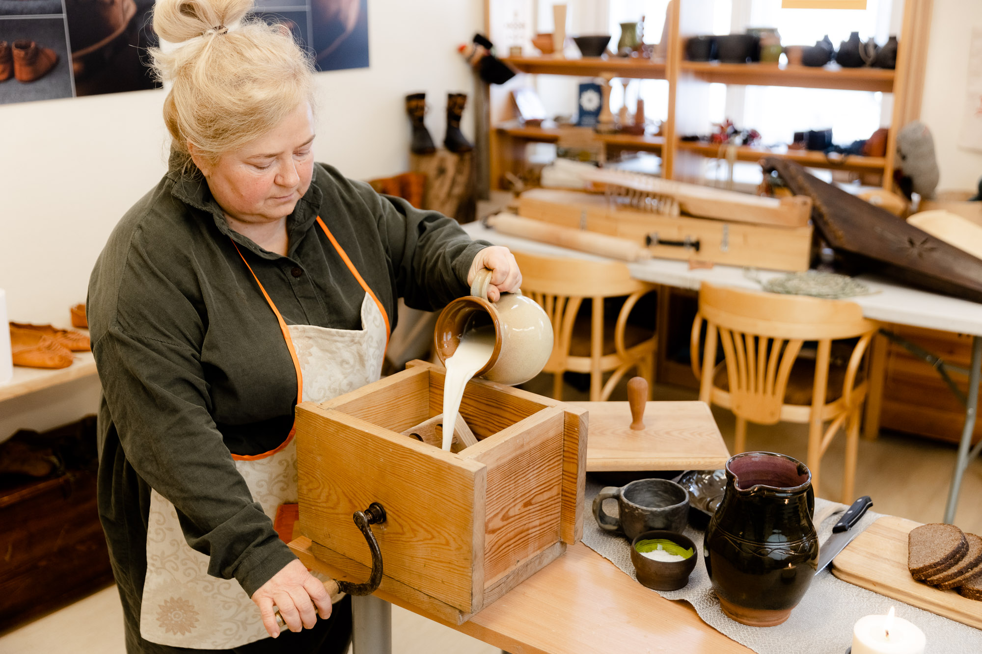 Lai neizzustu pēc sentēvu metodēm sviesta ieguves tradīcijas, asprātīgā meistare Inese Roze aicina “saiet sviestā” Drabešu muižas Amatu mājā. Programmā – iepazīšanās ar vēsturiskiem sviesta rīkiem, kopīga sviesta kulšana un degustācija.