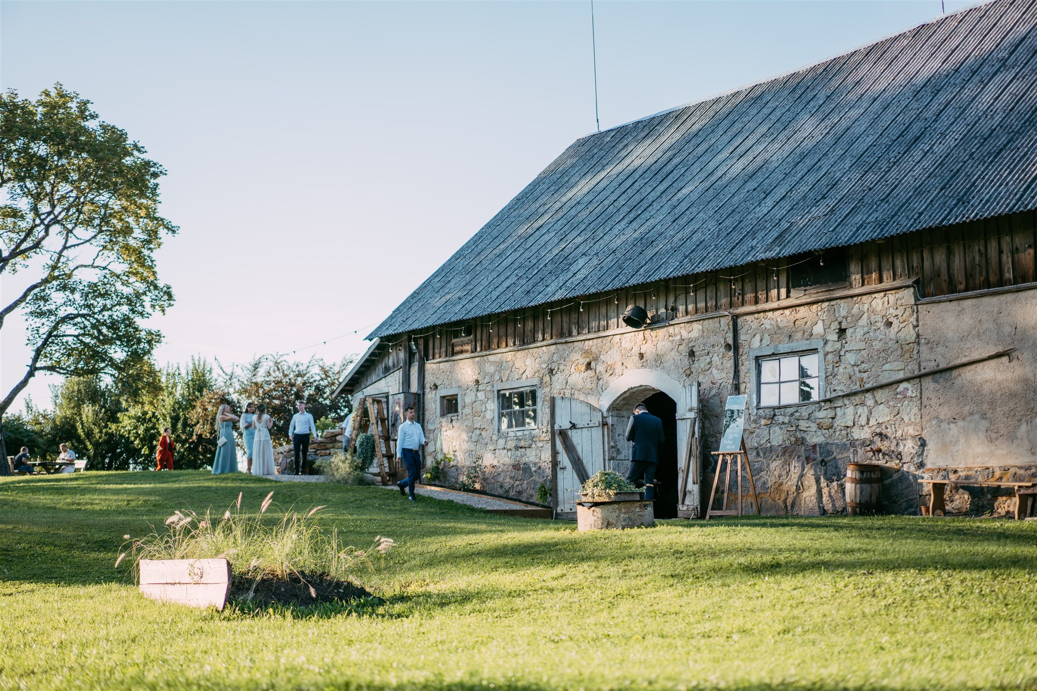 Piedāvājam svinēt svētkus mūsu atjaunotajā svinību šķūnī/kūtī līdz 100 personām. Lielā zāle atrodas sena siena šķūņa 2. stāvā, ar lielām durvīm – vārtiem, kas paver iespēju zālē iebraukt ar kādu īpašu transportu (motociklu, auto, zirgu utt.). Iekārtots ļoti mājīgs bārs/atpūtas telpa, izmantojama arī semināriem vasaras sezonā. Šķūņa 1. stāvā ir telpa ar otru bāru, kuru mūsu kāzinieki izmanto kā sagaidīšanas telpu ar uzkodām un šampanieti, gaidot jauno pāri vai svinībām - kāzām, dzimšanas dienām, semināriem līdz 50 personām. Jūs svinēsiet viens otru, sevi un laiku! Vairāk informācija par piedāvājumu, Skatīt te. Pieejama plaša apkārtne fotosesijai, kā arī laulību ceremonijai dabā.